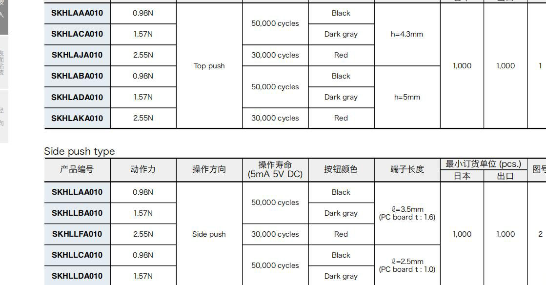 ALPS輕觸開關SKHL系列
