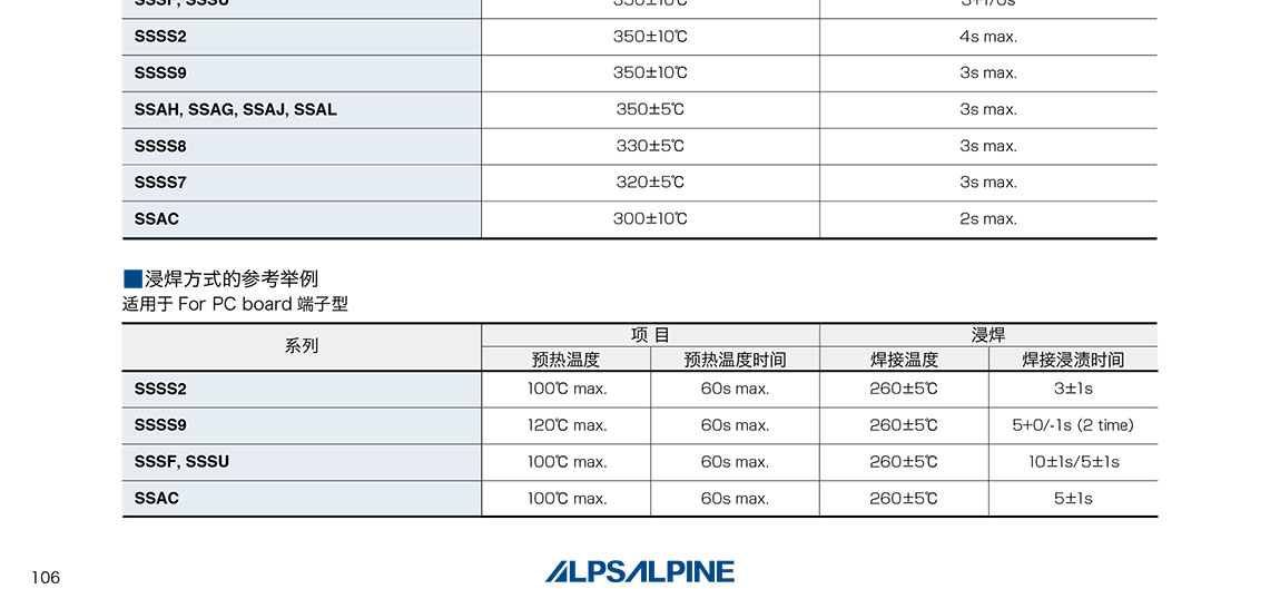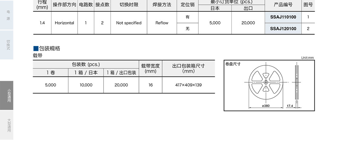 ALPS滑動開關SSAJ 系列