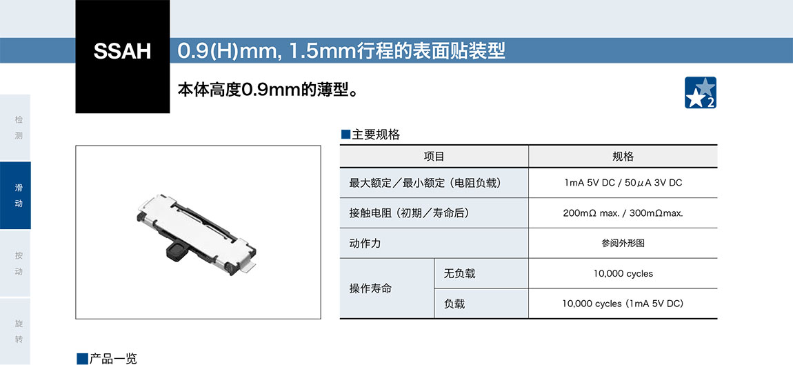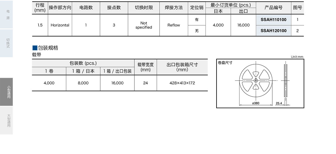 ALPS滑動開關SSAH 系列