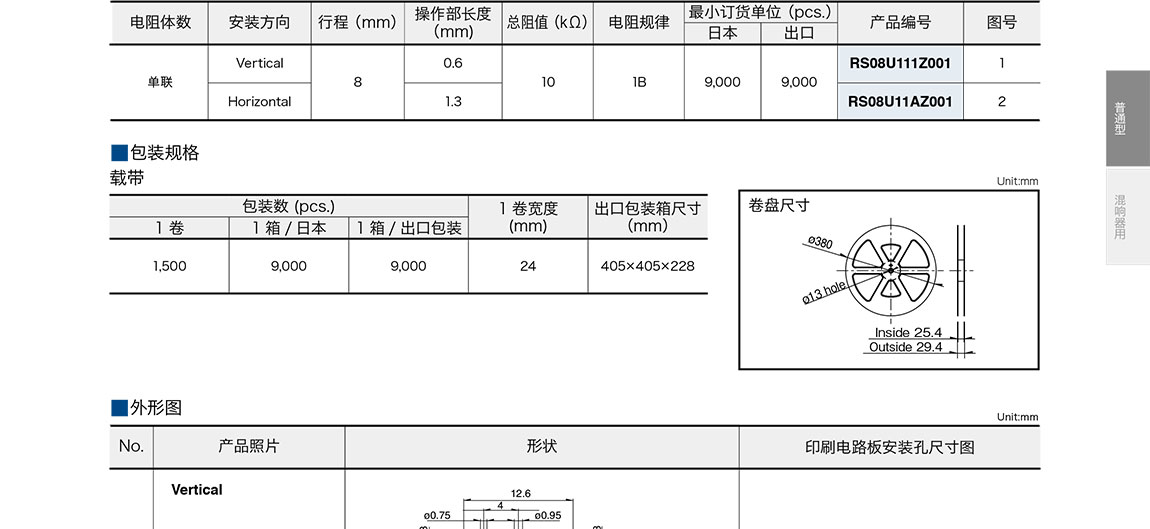 ALPS滑動(dòng)電位器RS08U系列