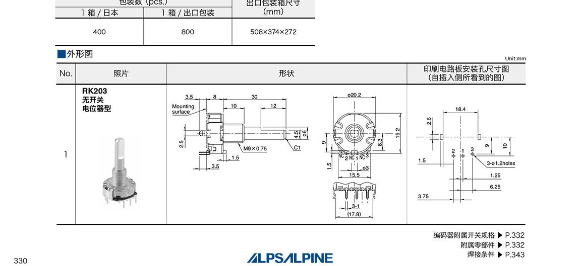 ALPS車載用電位器RK203系列