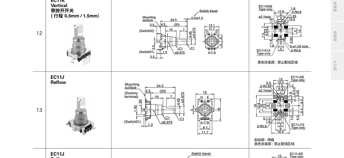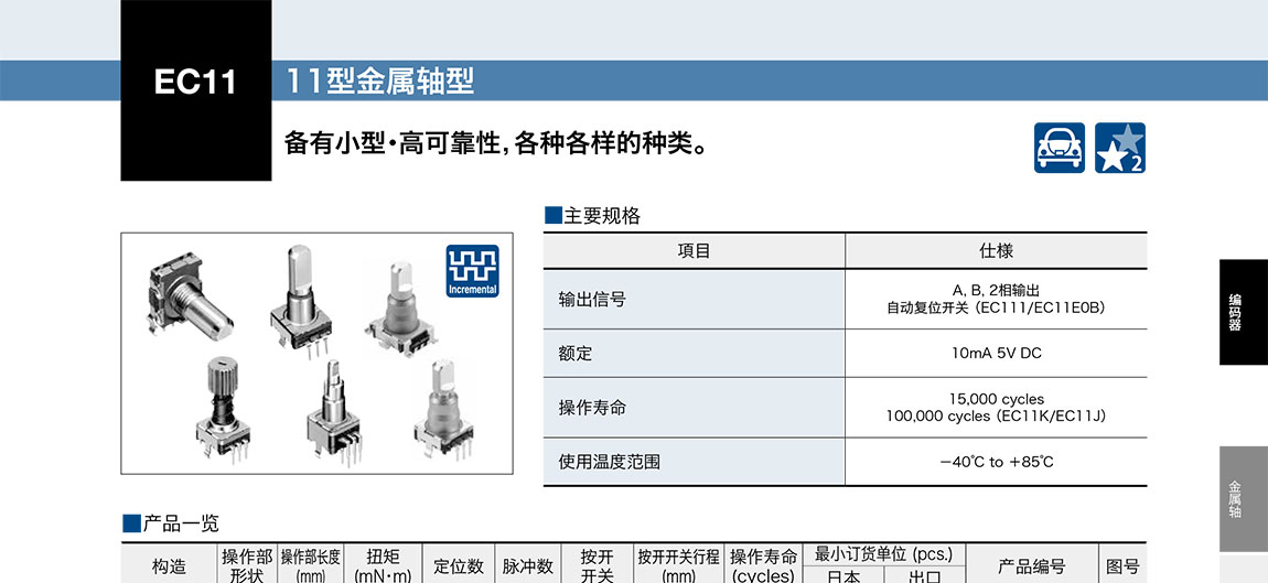 ALPS車載用編碼器EC11系列