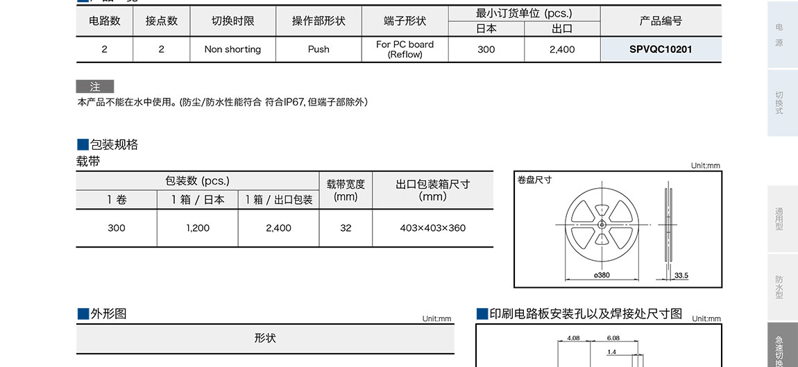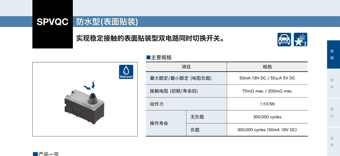ALPS防水開(kāi)關(guān)SPVQC系列