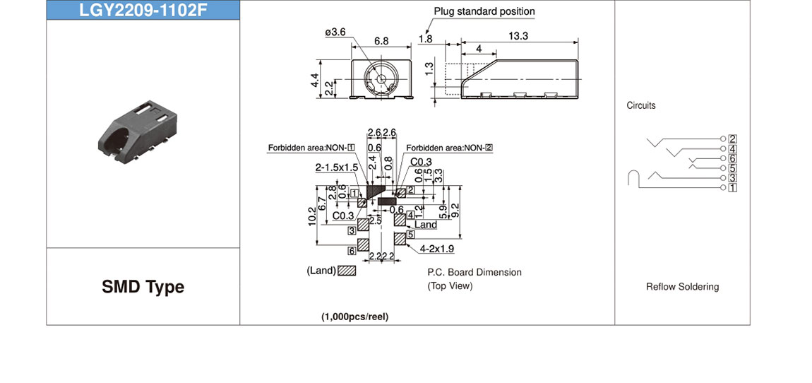 尺寸:13.3× 6.8× 4.4 mm
