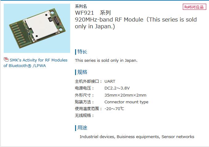 SMK RF模塊WF921系列