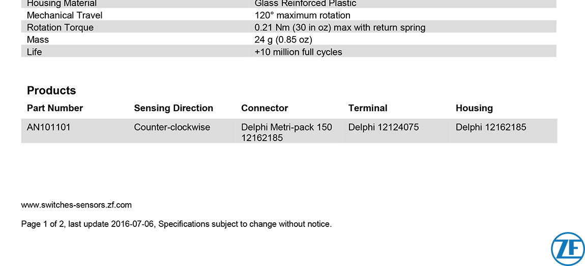 AN1 傳感器系列
