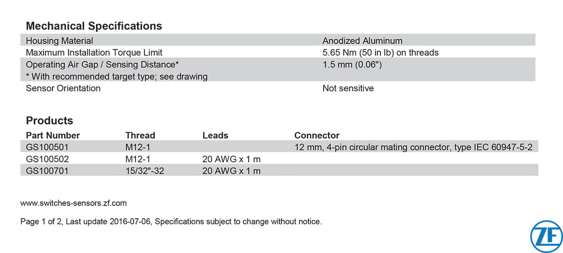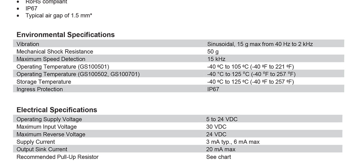 GS1005 – GS1007 傳感器系列