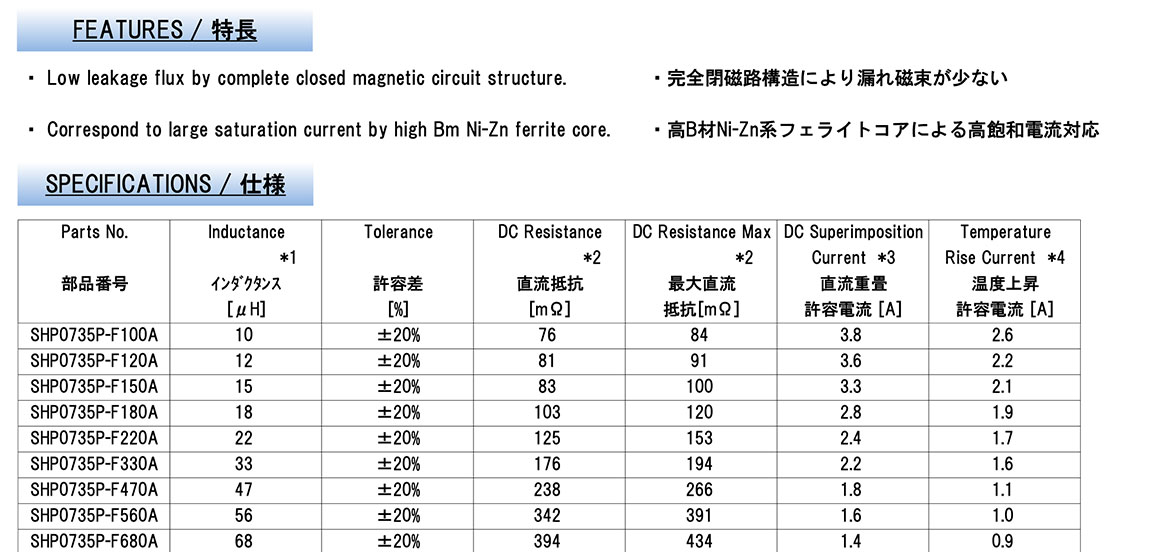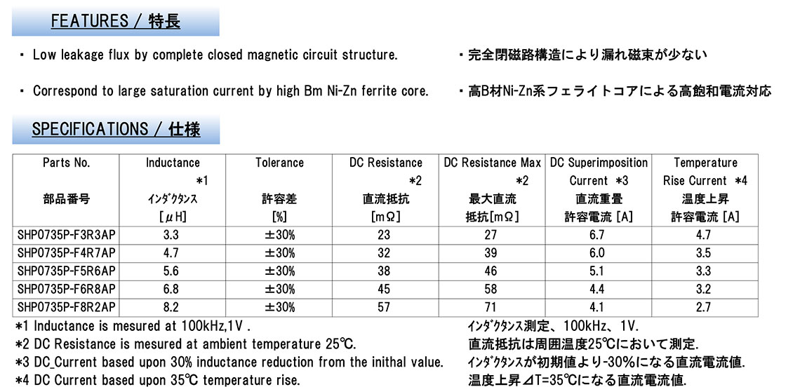 SHP0735P-F4R7AP SHP0735P-F5R6AP SHP0735P-F6R8AP SHP0735P-F8R2AP SHP0735P-F3R3A