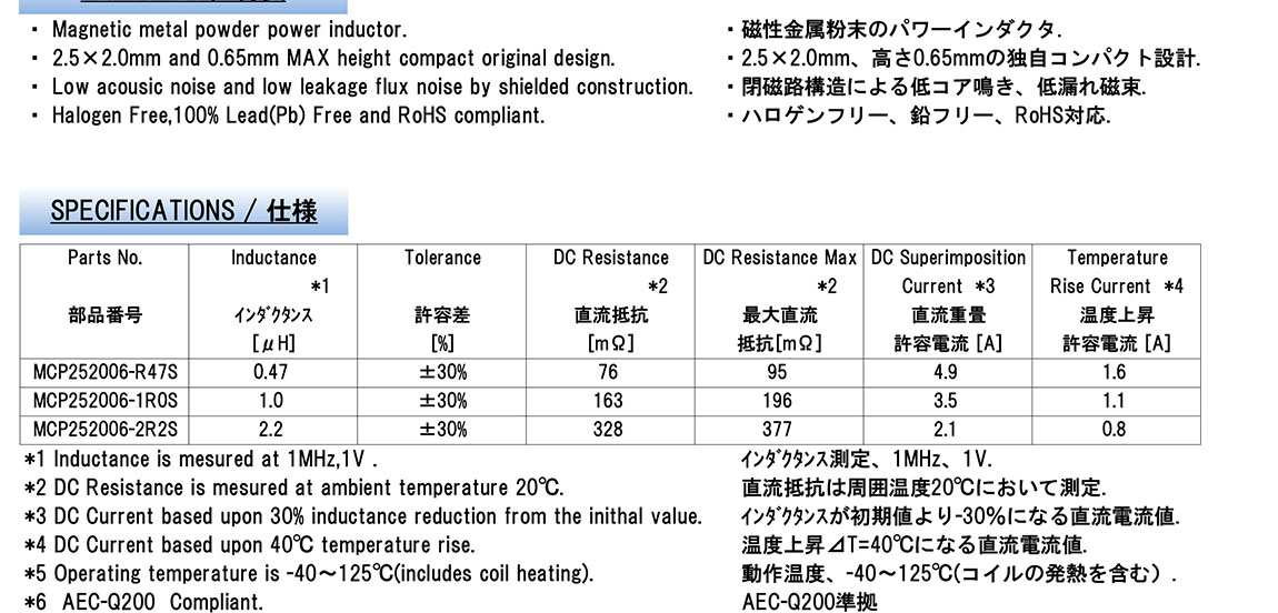 MCP252006-1R0S MCP252006-R47S MCP252006-2R2