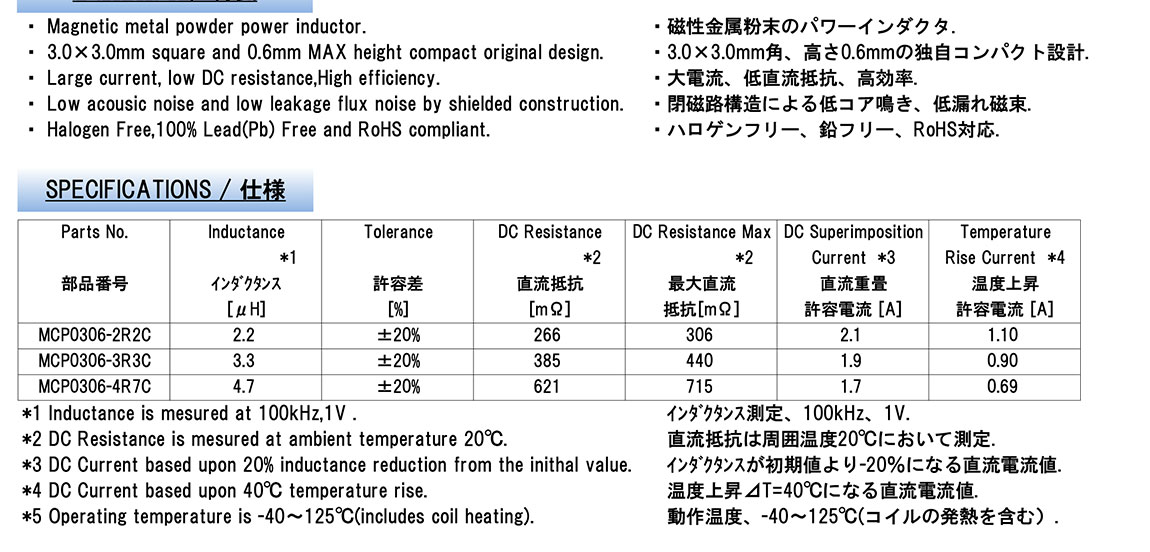 MCP0306-3R3C MCP0306-2R2C MCP0306-4R7