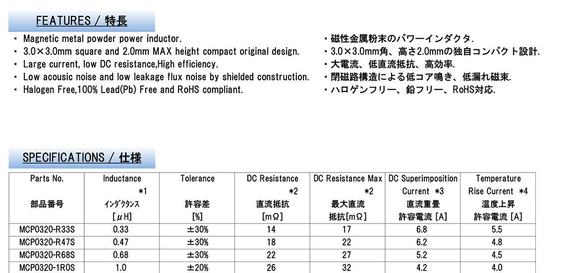MCP0320-R47S MCP0320-R33S MCP0320-R68S MCP0320-1R0S MCP0320-1R5S MCP0320-1R2S MCP0320-2R2S MCP0320-3R3S MCP0320-6R8S MCP0320-4R7S MCP0320-100