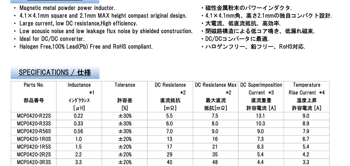 MCP0420-R22S MCP0420-100S MCP0420-6R8S MCP0420-5R6S MCP0420-4R7S MCP0420-3R3S MCP0420-2R2S MCP0420-1R5S MCP0420-1R0S MCP0420-R56S MCP0420-R33S